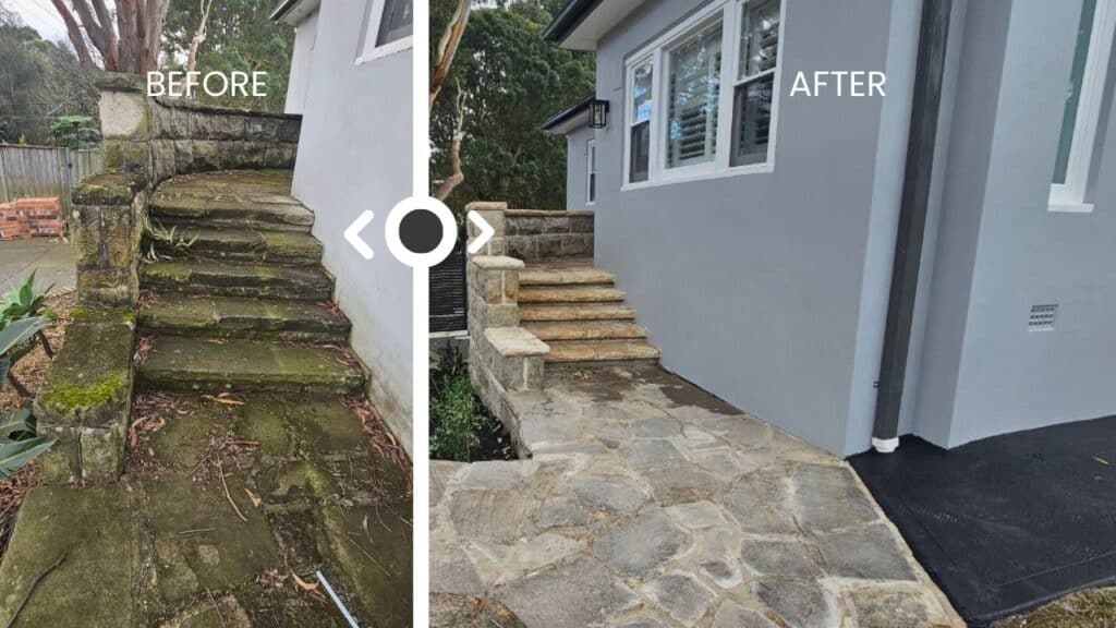 - Sandstone Staircase Restoration: Broken sandstone steps were replaced, and the entire staircase was polished for a fresh, natural look.